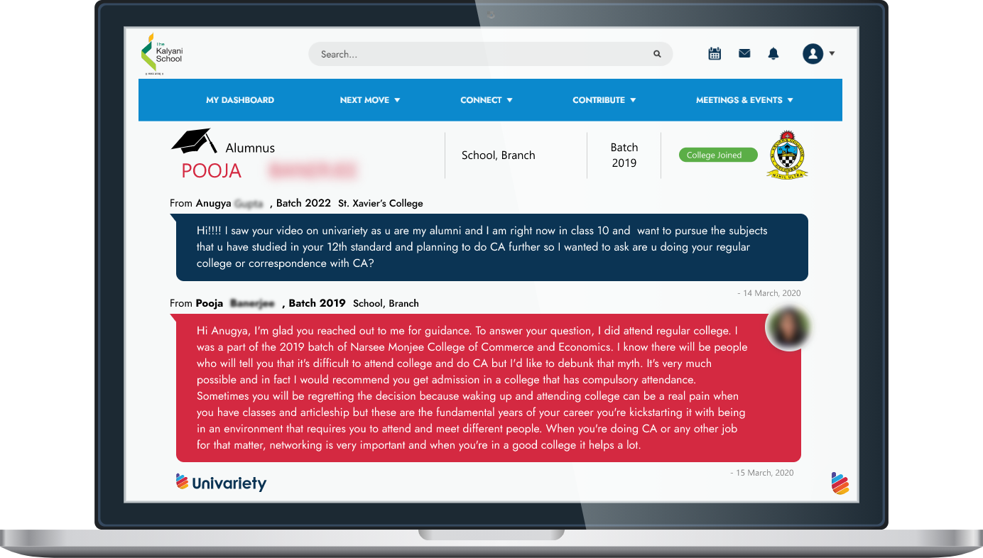 There’s no better way to seek guidance from someone who’s been there and done that. Students can reach out to their seniors from across batches and campuses to ask anything and everything about career clarity.